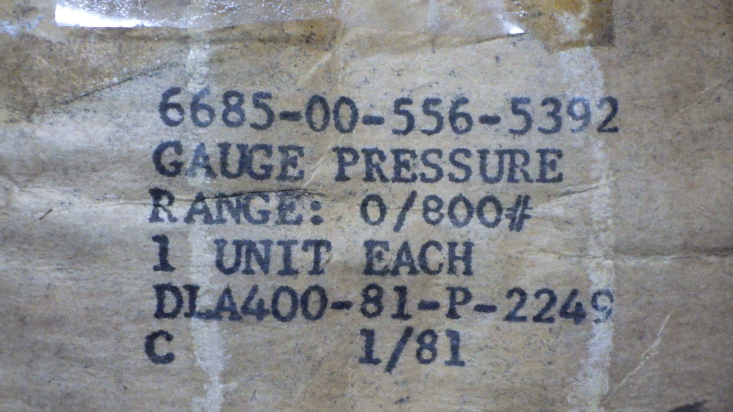 ITEM NAME: GAGE,PRESSURE,DIAL