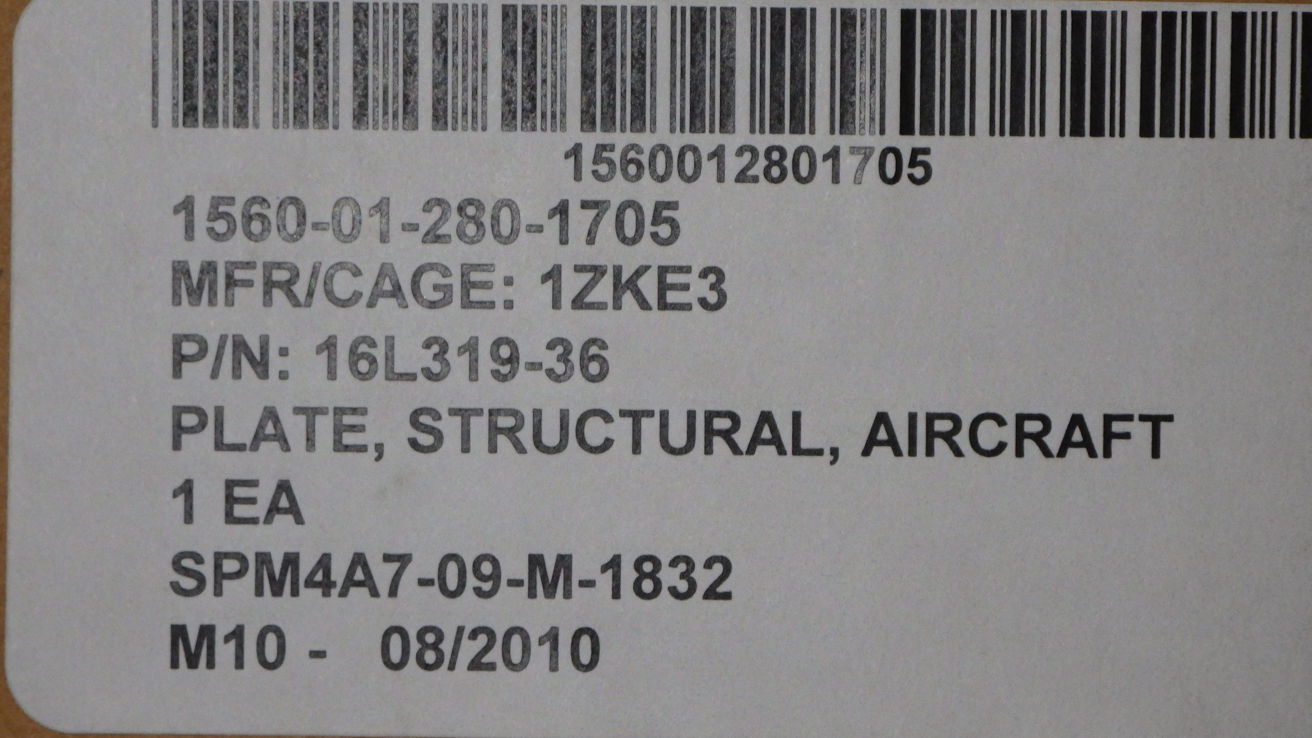 ITEM NAME: PLATE,STRUCTURAL,AI