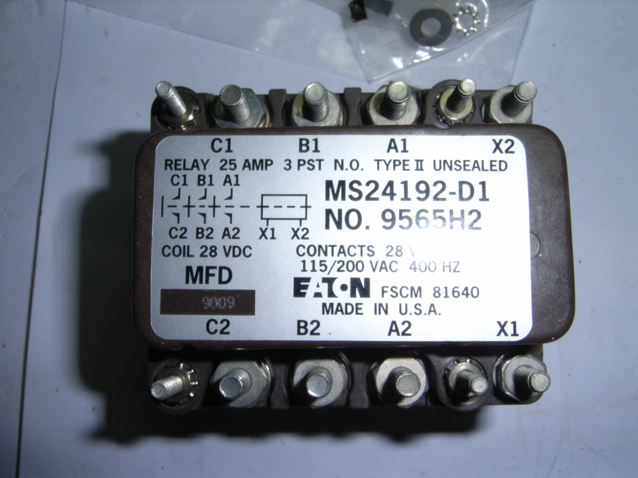 RELAY P/N: MS24192D1 NSN: 5945 00 549 6348 MFG MILITARY STANDARDS NEW GOV SURPLUS SUPPLIER CAGE 03EF7