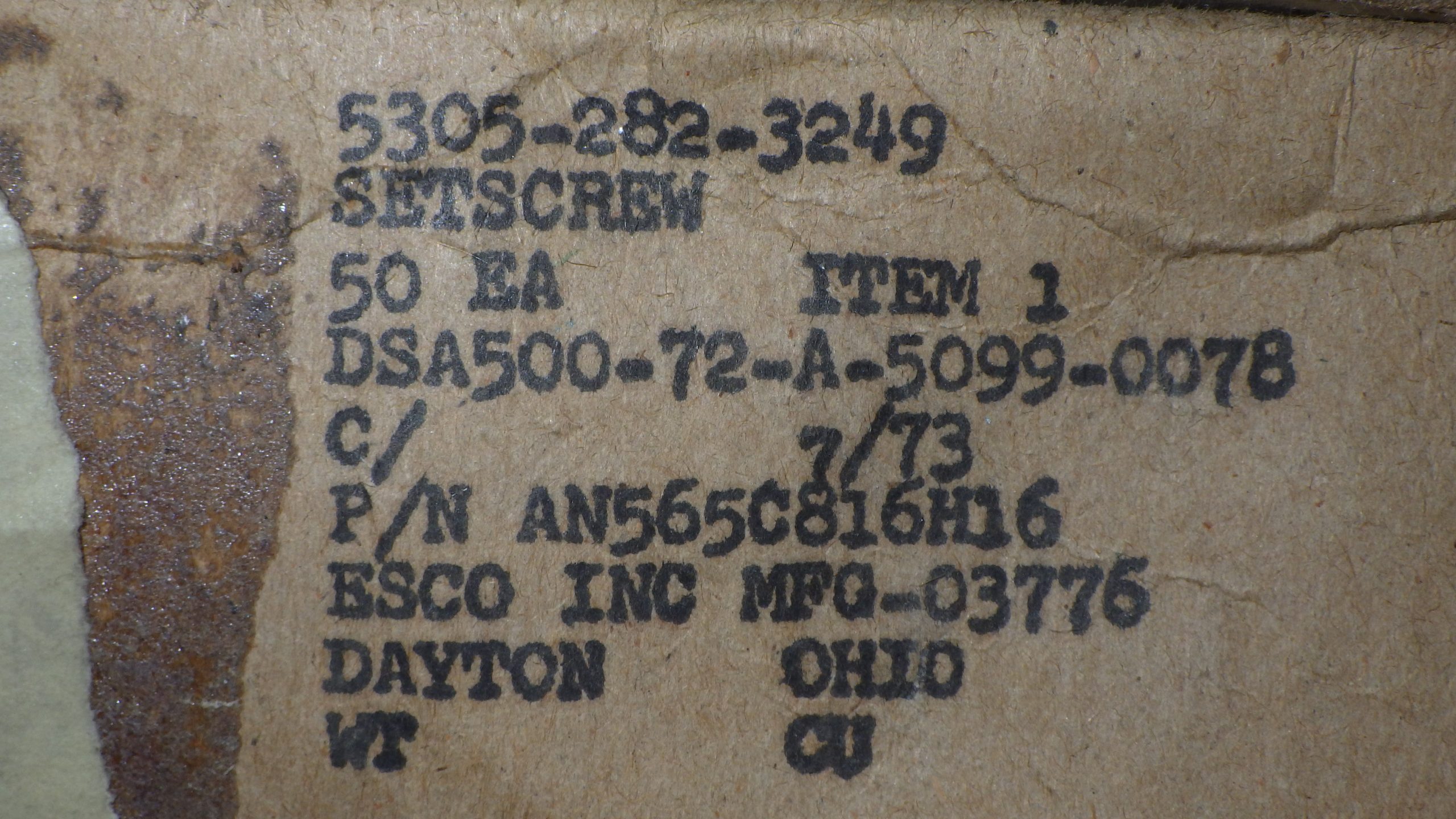 ITEM NAME: SETSCREW